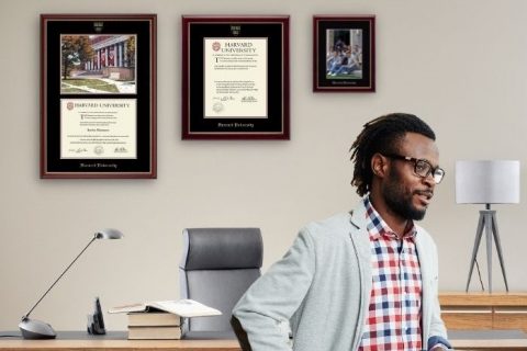 The office is probably the most popular location to display a diploma, as it’s the perfect place to add a frame that highlights your qualifications. Hanging your diploma over your desk behind your office chair equips you with an excellent marketing tool that reminds clients, coworkers, and employers of your impressive credentials. Plus, it can help you bring purpose to your everyday work. With more and more people working remotely in their home offices, adding a Harvard University diploma frame above file cabinets in your office space will spark confidence in potential clients and customers.